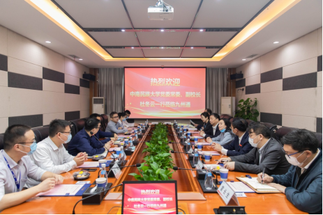 杜冬云一行觀看了集團宣傳片,與九州通醫藥集團黨委副書記高凡、九州通大學校長何中偉等展開座談。