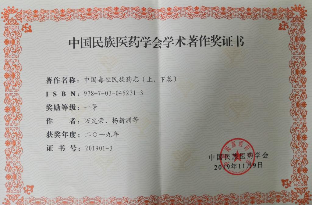 在2018年版的《湖北省中藥材質(zhì)量標(biāo)準(zhǔn)》中,他和他的團(tuán)隊(duì)共研究制定和修訂了28個(gè)土家族藥材標(biāo)準(zhǔn),使數(shù)十種土家族特色藥材收錄其中,將土家藥不斷用文字傳承下來(lái)。他與他的團(tuán)隊(duì)還主編了我國(guó)第一部大型的《中國(guó)毒性民族藥志》(上下卷),為民族藥的安全應(yīng)用提供了重要的參考依據(jù)。其相關(guān)的多項(xiàng)研究成果先后獲得教育部及湖北省科技進(jìn)步二等獎(jiǎng)3項(xiàng),中國(guó)民族醫(yī)藥學(xué)會(huì)科技進(jìn)步一等獎(jiǎng)1項(xiàng)。