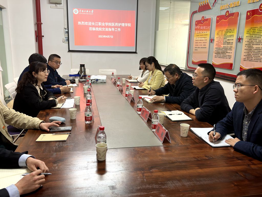 4月7日,長江職業學院醫藥護理學院院長楊漢祥、黨總支書記吳煒帶隊到我院,就“樣板支部”“黃大年式教師團隊” 申報創建情況進行交流學習。院黨委書記江瑩、黨委委員楊光忠以及藥學系、藥劑系支部支委參加了交流活動。