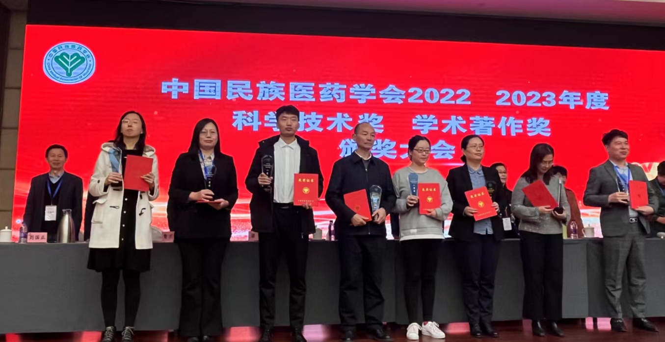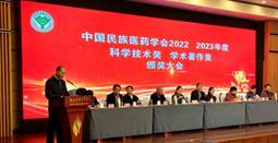 2023年12月9日,由中國民族醫藥學會舉辦的2022、2023年度科學技術獎、學術著作獎頒獎大會在北京舉行。我院萬定榮教授和榮獲2022 年度中國民族醫藥學會科學技術獎·藥物創新獎一等獎的黃先菊教授一同受邀參加頒獎大會,萬定榮教授受邀代表獲獎者發言。