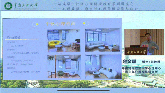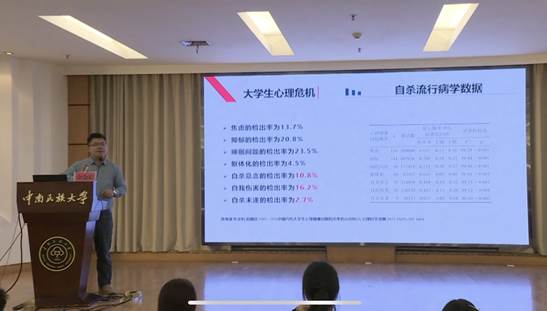 余金聰老師從“大學生心理危機概況”、“大學生自殺的識別”、“大學生自殺的應對”及“重點關注人群的特征”等四個方面深入講解了心理危機識別和應對的核心要點。他強調,心理委員和寢室長要具備觀察、傾聽與溝通的能力,留意身邊同學的細微變化,做到及時發現潛在的心理危機,成為同學們“有心的支持者”。