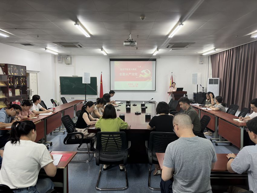 為進一步落實學習貫徹習近平新時代中國特色社會主義思想主題教育要求,不斷深化對全面從嚴治黨深遠意義的理解,7月5日下午,院黨委書記江瑩以《堅定不移深入推進全面從嚴治黨》為題講授主題教育專題黨課。學院全體班導師、黨支部書記參加學習。