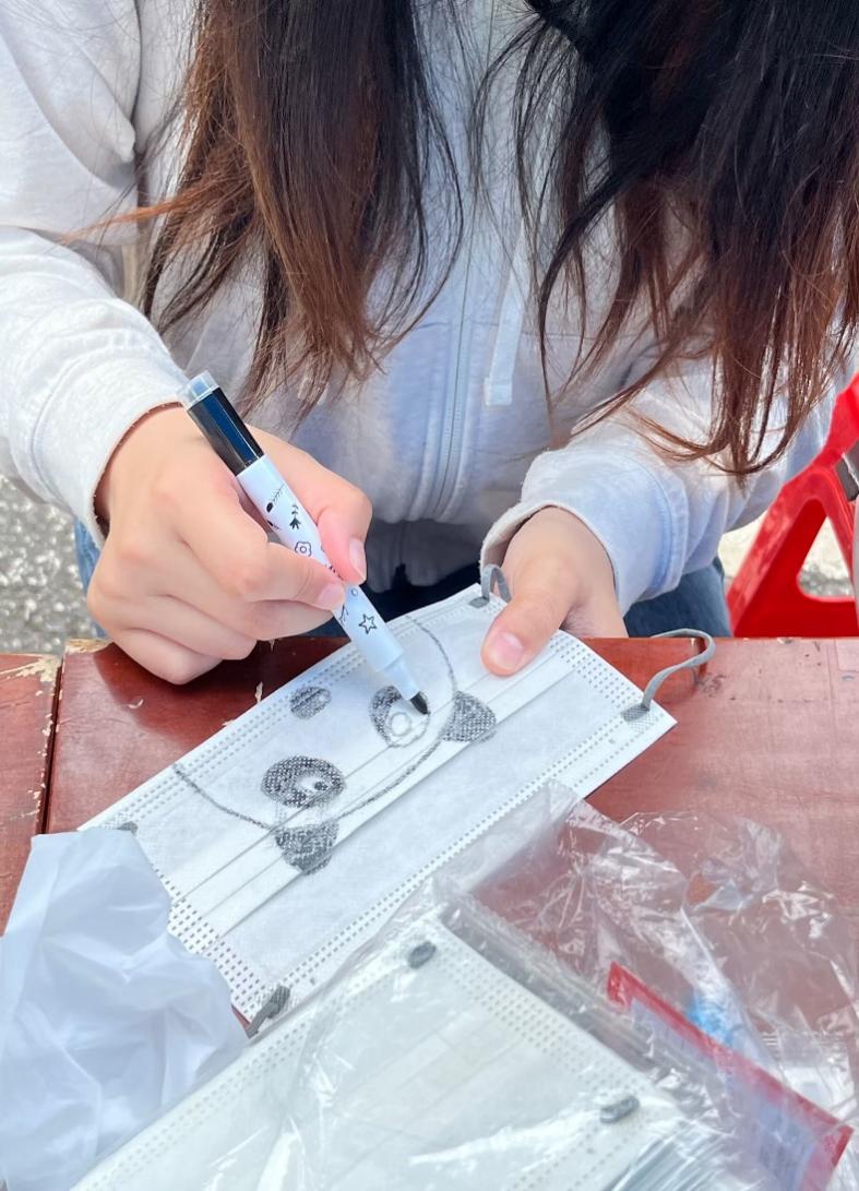 活動以“擁抱挫折,悅納自我”為主題,以戶外擺臺形式開展,現場設有“心靈寄語”、“疊疊樂與心里話”、“口罩彩繪”、“跳方格”、“猜句傳遞”等五個環節。在“心靈寄語”環節中,同學們先在便利貼上寫下對他人的祝福或回復他人的話語,再隨機抽出一張他人寫好的祝福送給自己,大家通過紙條對話的方式,在陌生人充滿善意的語句中汲取到前行的力量;“疊疊樂與心里話”環節中,同學們需小心翼翼地抽出木塔上的小木條,并回答小木條上對應的心理小問題,在游戲問答中引發大家對自我認識的思考;“口罩彩繪”環節中,同學們充分發揮自己的想象力,在口罩上畫出喜歡的圖樣,這一環節象征了“疫情結束,口罩之下是我們的笑臉”美好寓意;“猜句傳遞”環節中,同學們通過團隊協作,合力猜出正確答案,深刻體會到齊心協力、合作共贏的樂趣。