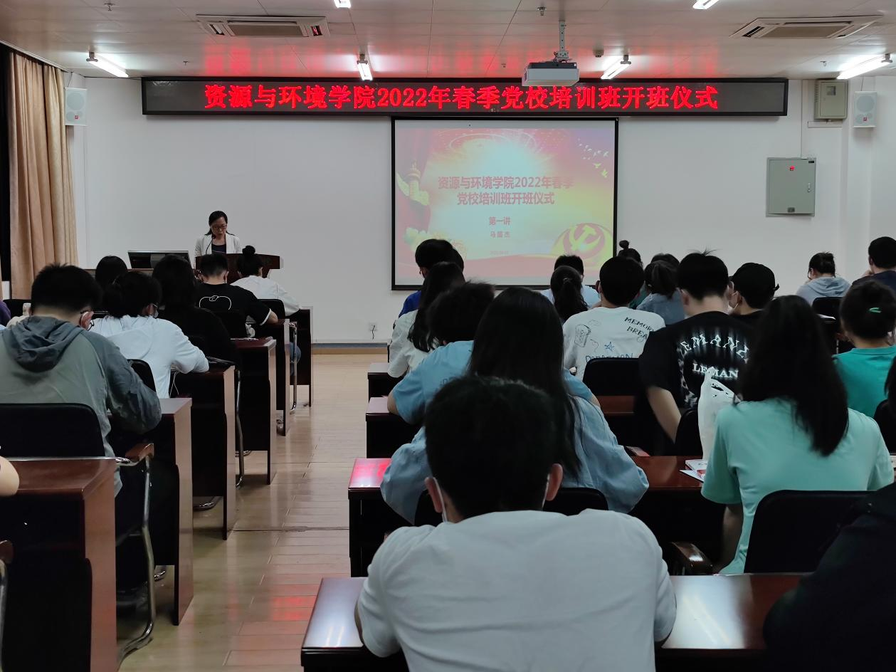 4月9日晚,資源與環境學院2022年春季黨校培訓班在13棟261舉行開班儀式暨第一講,學院黨委書記馬國杰、總第93期入黨積極分子培訓班學員、總第12期發展對象培訓班學員、總第13期預備黨員培訓班學員出席開班儀式,本次活動由黨校帶班老師黃晴主持。