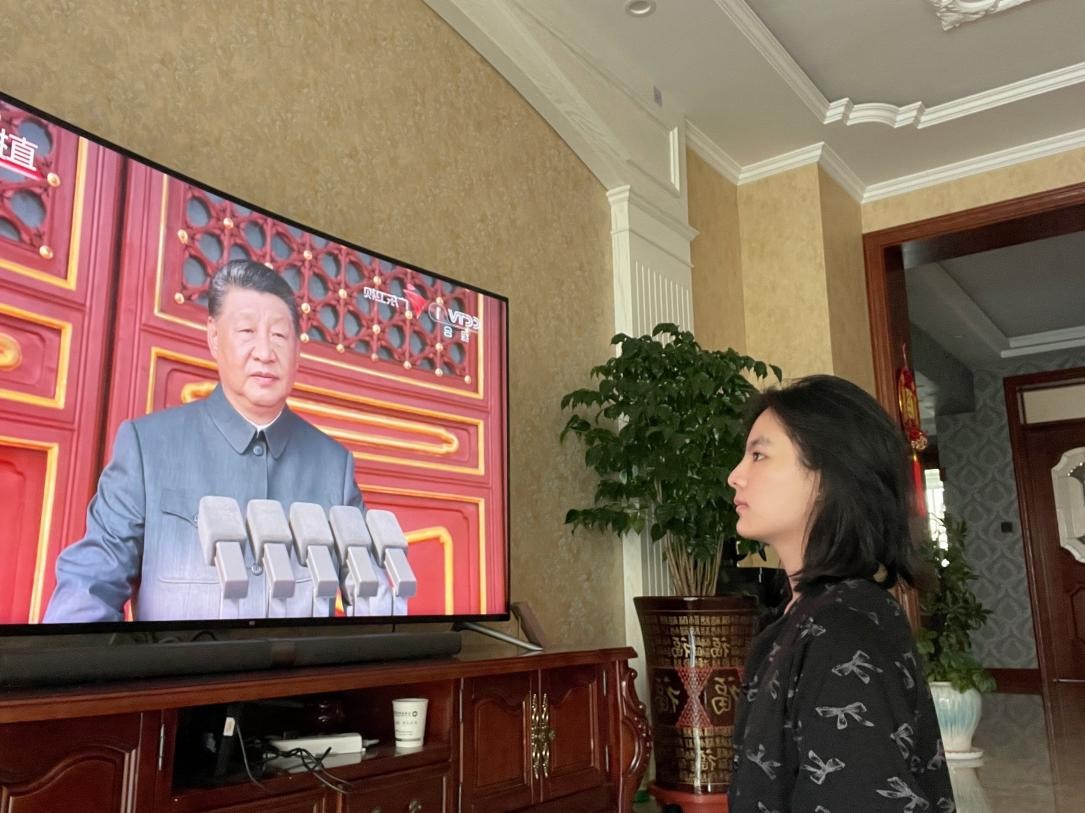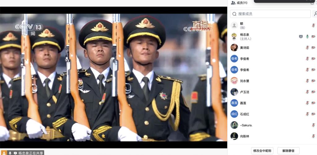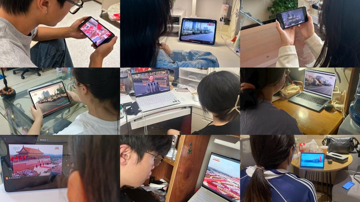 組織居家學生線上收看閱兵儀式。資源與環境學院供圖
