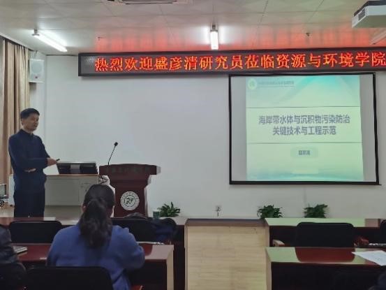 2023年3月24日上午,中國科學院煙臺海岸帶研究所盛彥清研究員應邀為我院師生做了題為《海岸帶水體與沉積物污染防治關鍵技術與工程示范》的學術報告。報告由資環學院張勝花教授主持,學院師生積極參加。