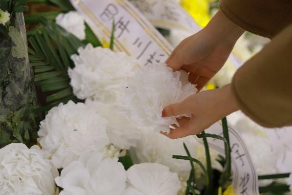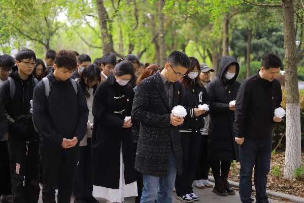 隨后,全體成員肅立默哀一分鐘,接著師生一道向吳澤霖先生雕像三鞠躬,獻(xiàn)上一對(duì)花籃和師生們親手制作的白花,以表達(dá)深深感激和無限哀思之情。