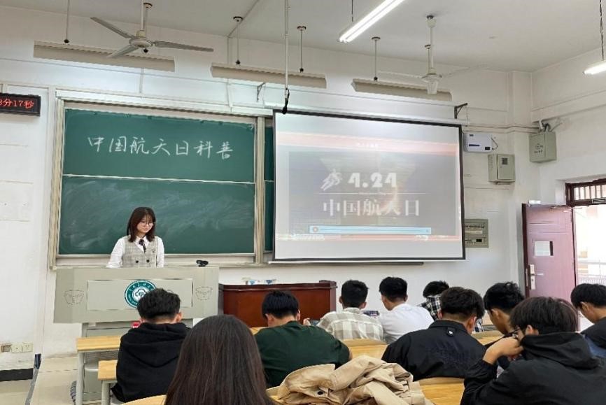 中國航天日,是為了紀念中國航天事業成就,發揚中國航天精神而計劃設立的一個紀念日,其主旨是要銘記歷史、傳承精神,激發全民尤其是青少年崇尚科學、探索未知、敢于創新的熱情,為實現中華民族偉大復興的中國夢凝聚強大力量。資環類2302班蔡博軒、環科2201班李碧涵帶領同學們學習了載人航天精神,2306班賈世穎帶領大家觀看了航天科普視頻,各班通過多種方式引領學生學習中國航天精神、載人航天精神、兩彈一星等知識,傳承航天精神。