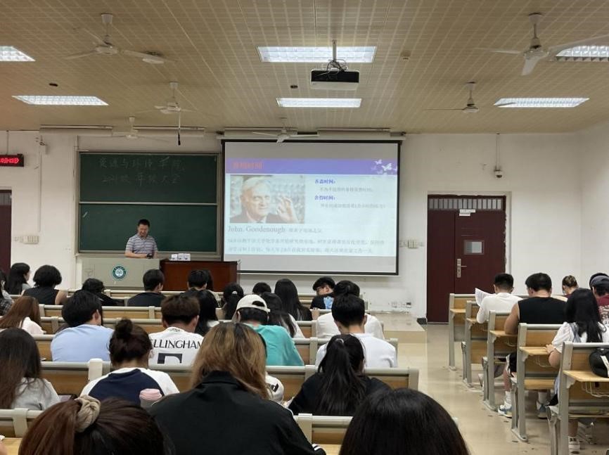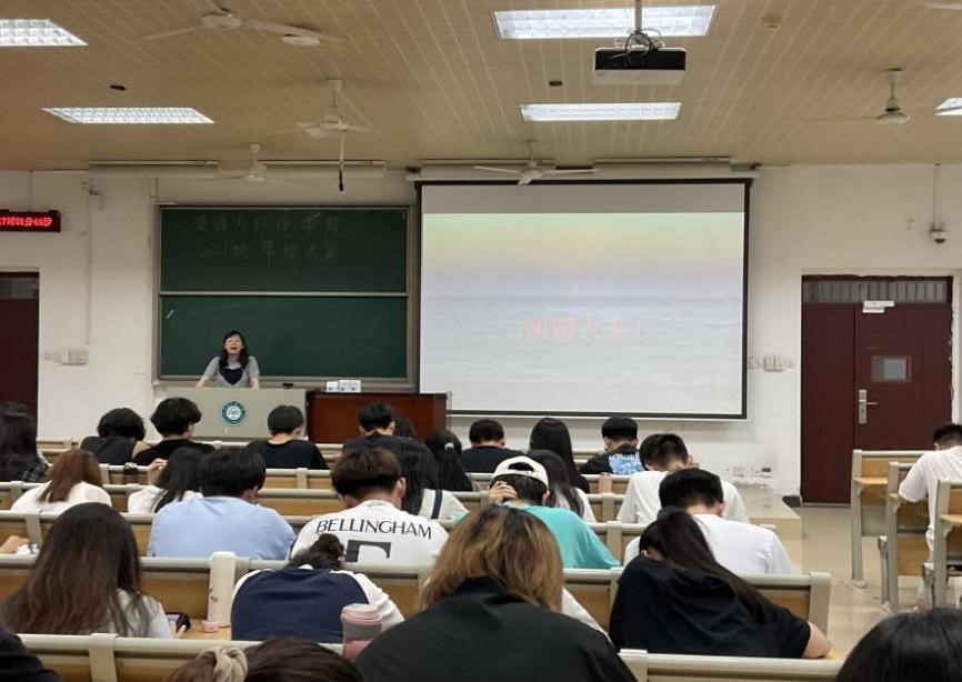 為加強優良學風建設,教育引導2021級本科生合理規劃大三春季學期關鍵期,掌握當下就業考研形勢,做好未來路徑規劃,助力學生成長成才,5月21日下午,我院于11棟100教室召開2021級本科生年級大會。院長孫杰、黨委副書記藍永麗、輔導員王瑩瑩及2021級全體學生參加會議,會議由藍永麗主持。