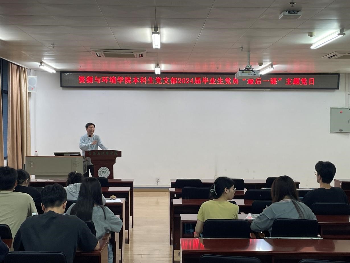 為進一步做好畢業生黨員教育,激發黨員使命擔當,6月11日晚,資環學院本科生黨支部于13棟261報告廳開展“凝心鑄魂擔使命,挺膺擔當新時代”畢業生主題黨日活動。黨支部書記黃晴和全體2024屆畢業生黨員參加活動。