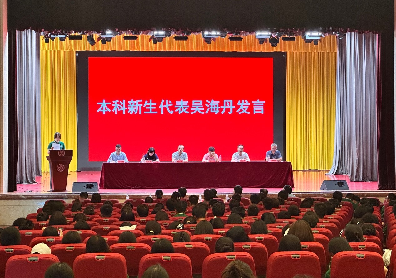 本科在校生代表、環科專業2021級學生李鈺分享了自己在大學三年的成長歷程。她從學業、科研、社會服務三方面介紹自己的收獲和感想,鼓勵新生積極嘗試,全面發展自己。