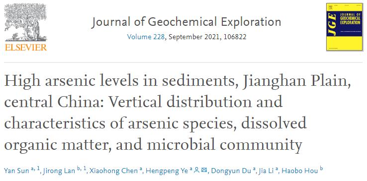 2021年5月,我院杜冬云教授課題組在地球科學(xué)類期刊《Journal of Geochemical Exploration》發(fā)表了題為《High arsenic levels in sediments, Jianghan Plain, Central China: Vertical distribution and characteristics of arsenic species, dissolved organic matter, and microbial community》的最新研究成果。研究生孫燕為該論文的第一作者,葉恒朋教授為通訊作者。
