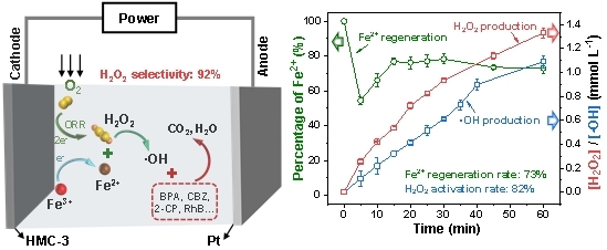 研究快報:具有高H2O2選擇性和增強Fe2+再生效率的電芬頓生物碳陰極