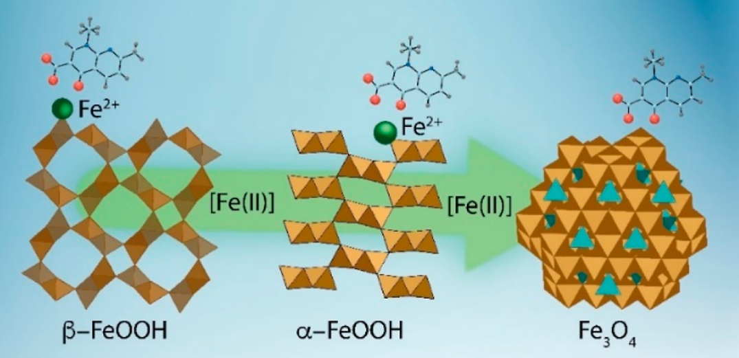 在實際環(huán)境中,Fe(II)與鐵(氫)氧化物常常共存,Fe(II)不僅能與抗生素形成絡合物,還能吸附在鐵(氫)氧化物上并且誘導鐵(氫)氧化物發(fā)生晶相轉(zhuǎn)變,這些過程會影響鐵(氫)氧化物的結(jié)構(gòu)與性質(zhì)。