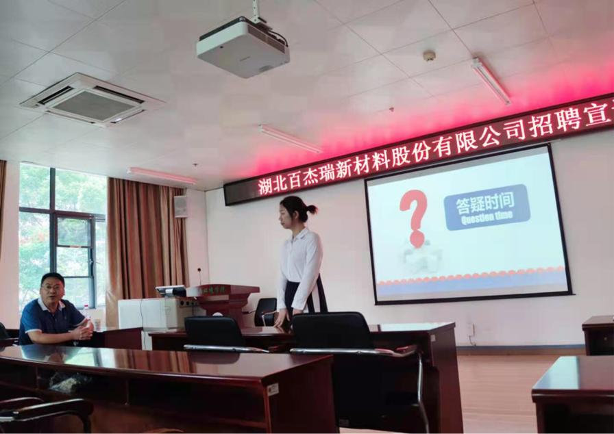 2021年5月28日上午,湖北百杰瑞新材料股份有限公司到我院261報告廳舉行專場招聘宣講會。