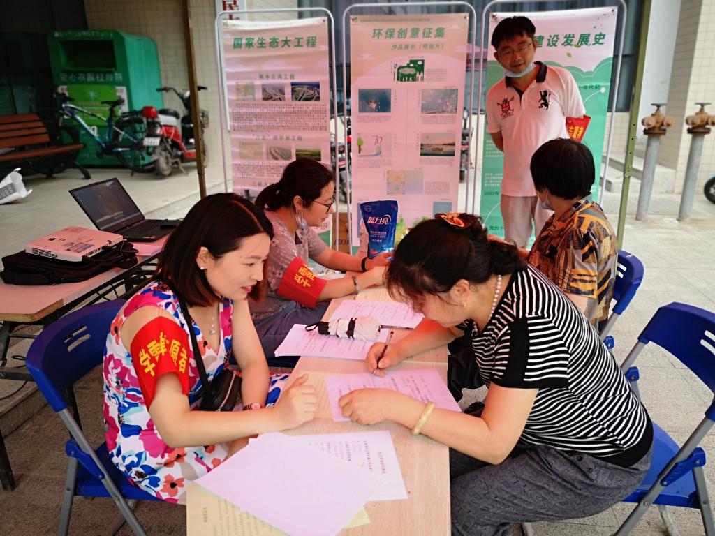 下沉黨員到達社區后,在黨群服務中心門口擺臺宣傳環保知識,內容包括了百年征程中的環保發展史、國家生態工程介紹、垃圾分類和碳中和相關知識科普、我校世界環境日活動展示等等,此外還用投影給社區居民展示十八大以來我國環境保護取得的歷史性成就。現場設有環保知識問答環節,讓居民在答題中了解到更多的關于低碳環保、節能的知識。此外,下沉黨員分片區給社區居民發放環保倡議書,倡議大家增強環保意識,積極爭當環境保護的宣傳者、監督者和參與者,為共建綠色家園、促進生態文明貢獻自己的一份力量,助力美麗中國、美麗民大的創建!